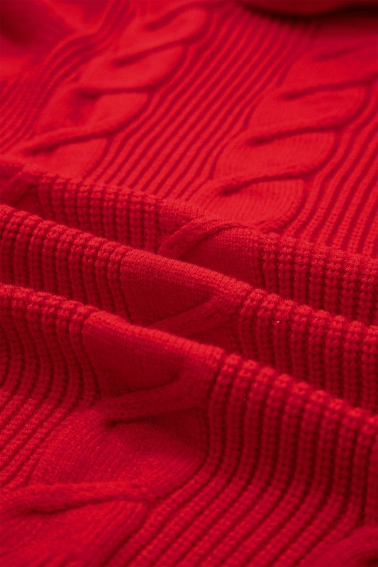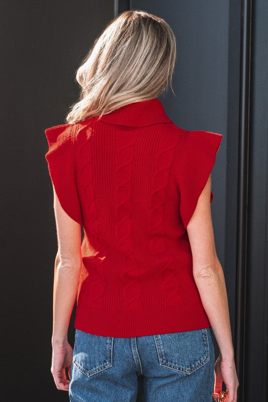 Wrap yourself in timeless elegance with this cable knit turtleneck sweater. The classic textured knit creates cozy depth while the high neckline delivers a polished, winter-ready silhouette. Delicate ruffled short sleeves add a charming feminine detail that sets this piece apart. Crafted from soft, stretchy fabric, it moves with you for all-day comfort without compromising on style. Perfect for layering or wearing solo during cooler months. Viscose/Polyester/Poly