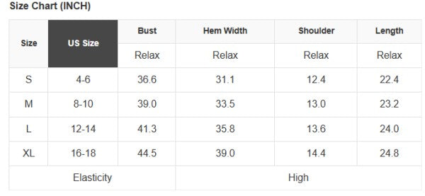 See size chart for approximate measurements