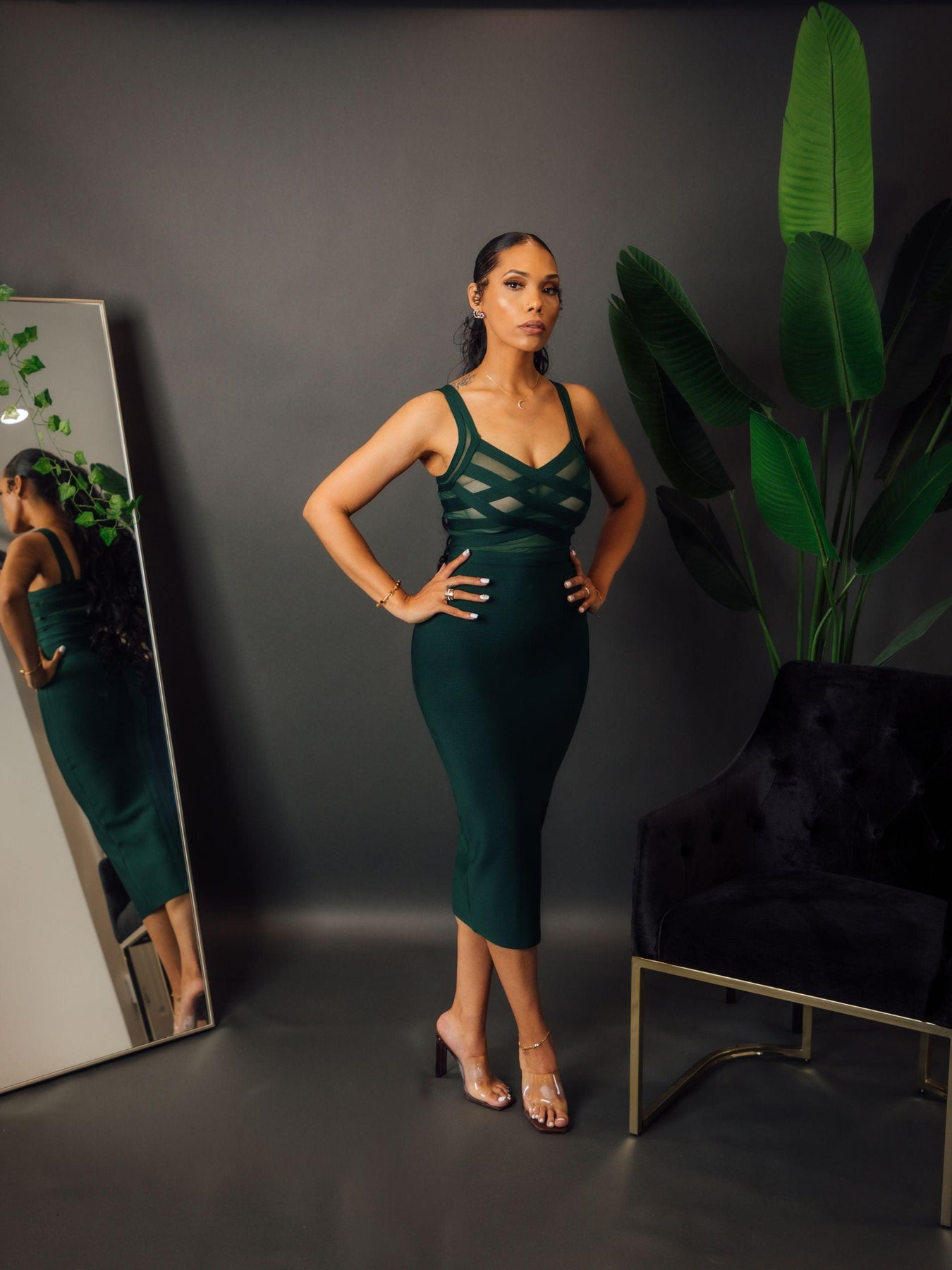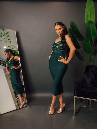 Elegant Upgrade | Sleeveless Spliced Mesh Midi Bandage Dress MEDIUM